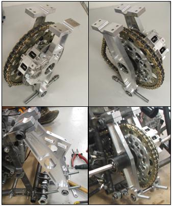 Torque from the engine is transmitted to the differential by a 520 gauge chain and sprockets. The differential mountings may be adjusted to allow the chain to be tensioned and a range of alternative sprockets to be used.