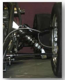 The suspension system is a typical unequal length double wishbone link system with anti-pitch characteristics. The front spring damper is mounted directly between the chassis and the lower wishbone and the rear spring damper uses a pull rod and rocker arm arrangement. Suspension kinematics were analysed using Lotus Engineering Software, LESoft. To reduce mass, steel wishbones have been replaced with carbon fibre tubes bonded to a steel or aluminium apex. Tie/track rods and rear pull rods have been made with the same mandrel wound carbon fibre tubes for the same reason. Shock absorber used for the front suspension was a Manitou Evolver ISX1 and for the Rear FOX Float R shocks were used. The air spring damper offers an 860g weight saving for the front suspension alone and about 896kg for the rear suspension.