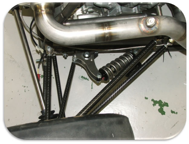 Shows the Rocker Arm-Pull rod arrangement of the Rear Suspension